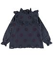 The Soft Gallery top has long sleeves and can be opened over the left shoulder with practical push buttons. The long sleeve top has a narrow ribbed edge in the neck opening.