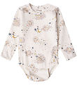 That's Mine bodysuit has long sleeves and can be opened over the left shoulder and between the legs, with two rows of push buttons, so the opening can be adjusted, making it practical and comfortable for kids. All openings have narrow ribbed edges and the bodysuit is in a nice and stretchy cotton quality.