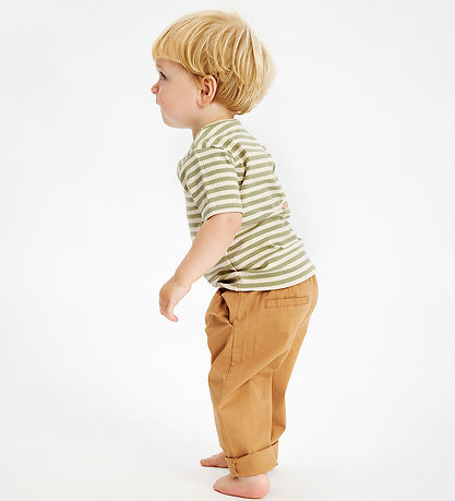 Practical trousers from The New Siblings in a warm light brown. The Trousers have a comfortable fit, making them a functional choice for everyday wear.