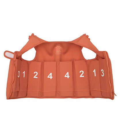 The Vanilla Copenhagen swim vest opens at the front with a zipper with a Velcro strap at the top. The Swim vest is held up by eight floating elements in internal pockets. The buoyancy elements can each be removed if the buoyancy of the lifejacket needs to be adjusted.
