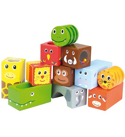 The Vilac blocks are all with sound. Some of the blocks have holes where there are others small blocks inside that you can move back and forth. The sounds vary from animal to animal, so the kid encounters several impressions. There are many possibilities for stacking the blocks, and therefore the only limit to what you can build is your imagination. With the many options, many hours of play are planned, where the kid can be creative with sine stacking blocks.