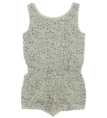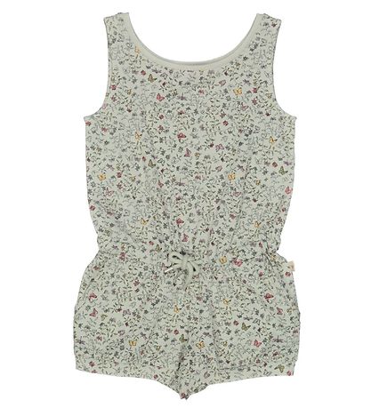 Beautiful Wheat summer romper in green with an all-over-print of butterflies and flowers.