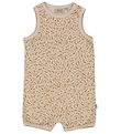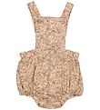 The Wheat summer romper has wide shoulder straps and short legs. It has a seam at at the waist with adjustable drawstring, so it stays in place as it should. It has an open pocket on each side at the front. The Summer romper is made of a soft and comfortable cotton quality.