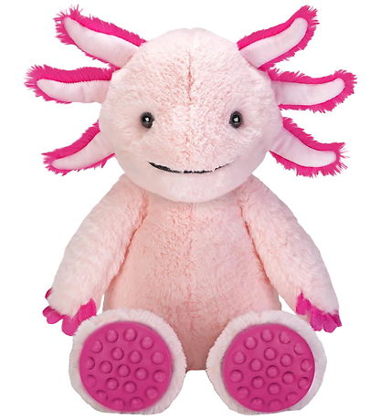 Beautiful Wild Republic soft toy, depicting an Axolotl in light rose with details in pink. The Soft toy has a sweet face with a smiling mouth. It has a soft body and plush fur, which is nice to touch. Under the feet there are round rubber bubbles that you can press in and out. The rubber bubbles make a pop sound and are soothing to play with. The Wild Republic soft toy is a good friend for play and relaxation.