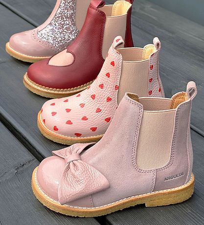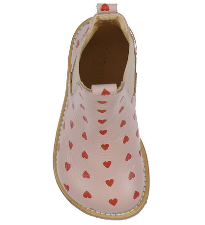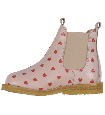 Beautiful Angulus boots in light rose leather with a nice allover print of small, red hearts.