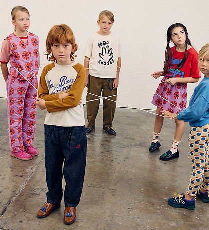Beautiful Bobo Choses blouse in melange light grey with light brown sleeves with a text print of "Go Bobo Choses TIC TAC TOE" in blue.