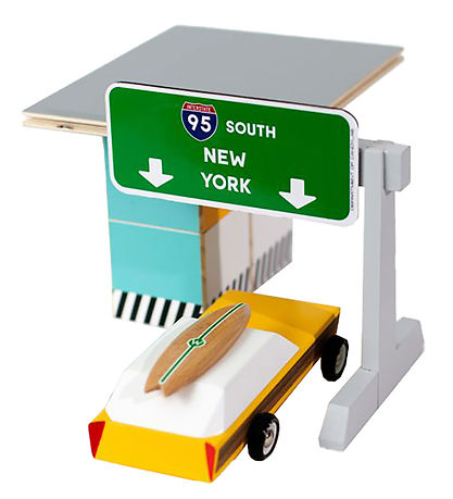 The Candylab accessories are designed to fit all 3 car lines from Candylab, Classic, Juniors and Candycars. The accessories include a New York 95 South magnetic freeway sign and 4 solid wood blocks that can be assembled for the toll booth. The accessories together with the various cars invite many hours of play and help develop the kid's imagination.