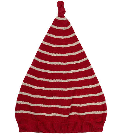 Beautiful Fabelab Christmas hat in a red shade with white stripes, in a finely knitted quality.