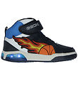 Cool Geox light-up shoes with a Marvel Spider-Man theme in red, blue and white.