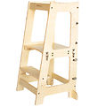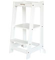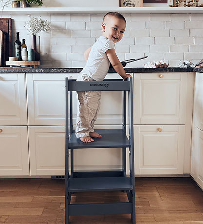 The Hemmingsen Kids learning tower can be used as a safe height for the kid, so that he can participate in activities at the kitchen table or dining table. Here, the kid can stand on the learning tower and help food at the kitchen table. The standing plate can be adjusted to three different heights, so that the learning tower can be adapted to the working height and the kid's height.