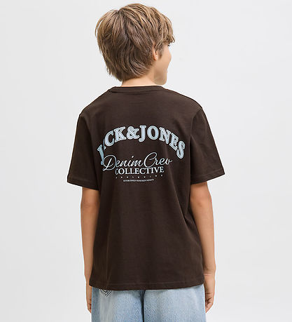 Beautiful Jack & Jones t-shirt in dark brown. The T-shirt has a simple print with the Jack & Jones logo in light blue placed on the left chest. On the back there is a large matching logo print.