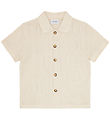 Lovely Konges Sløjd shirt with short sleeves in a blue and cream white check design. The Shirt has a nice collar and button closure at the front, which gives a stylish look.