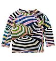 Smart Molo swim top in light blue with a print of coconuts with happy faces. The Swim tops has long sleeves and a round neckline with a card zipper at the neck.