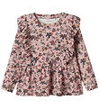 The Name It blouse has long sleeves and a round neckline with a narrow ribbed edge. Over the shoulders there are beautiful ruffles and along the bottom there is a seam with wrinkle details, which adds a unique touch to the design. Name It ensures a stylish and eye-catching blouse for the wardrobe.