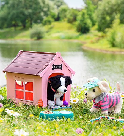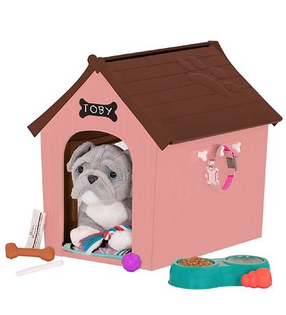 The Out Generation set includes a dog house, food and water bowl, toys, a newspaper, a dog collar and a soft blanket. A piece of chalk is also included, so you can write the dog's name on the front of the dog house.