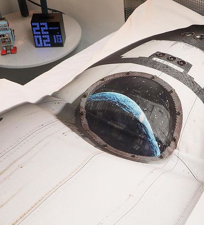 The Snurk set consists of a pillow cover and a duvet cover. With this fine bedding set, it is possible to transform into a real astronaut at night, and be a part of one's own universe.