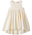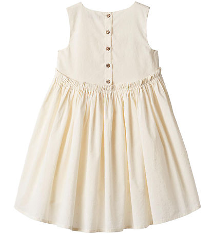 The Dress from Wheat is sleeveless and has wide straps around the shoulders. The skirt of the dress has a wide width and an underskirt in soft cotton, so that it does not appear transparent. The skirt also has a smart high-low effect, which makes it longer at the back than at the front. At the waist, there is a narrow, fine ruffle edge, which gives the skirt beautiful folds and a nice A-shape.