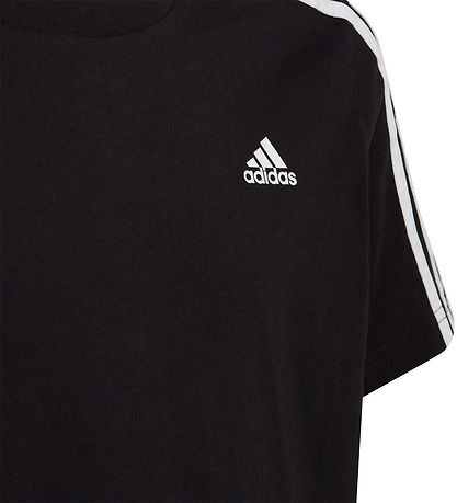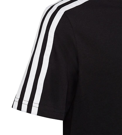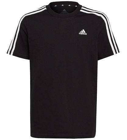 Smart adidas Performance t-shirt in black, with the three classic stripes on top of both sleeves in white. On the left chest there is a small logo print in white.