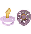 The BIBS pacifiers have an anatomical, inclined pacifier head made of natural rubber, which reduces pressure on the teeth and jaw. The pacifier's shield is made of lightweight PP and has a circular and outward-facing design with practical air holes, so that nuisance from the moist environment and vacuum against the kid's skin is avoided.