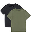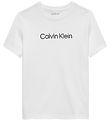 The T-shirt has a simple design with a little Calvin Klein logo embroidered on the left chest, giving it a discreet and stylish look. It has a round neckline with a narrow ribbed edge, ensuring a classic fit.