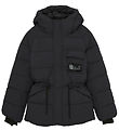 The Color Kids quilted jacket opens with a zipper with chin guard and internal wind pole, and there are two snap pockets on the front. The waist opening has an internal elastic edge.
