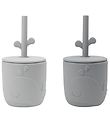 Fine Done by Deer cups sold in a 2-Pack in light grey and one in light coral with a fine crocodile on the front.