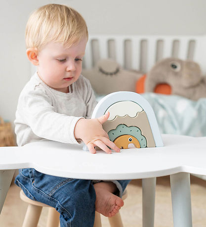 The Done by Deer stacking blocks has five multi-functional blocks that provide endless hours of imaginative play and puzzle solving. The Stacking blocks gives the kid the opportunity to stack, balance and take electricity in creative play, in addition the toy also functions as a decorative element for the children's room.