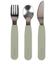 Fine Filibabba spoons sold in a 3-Pack in stainless steel with silicone handles in dusty green.