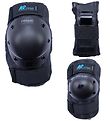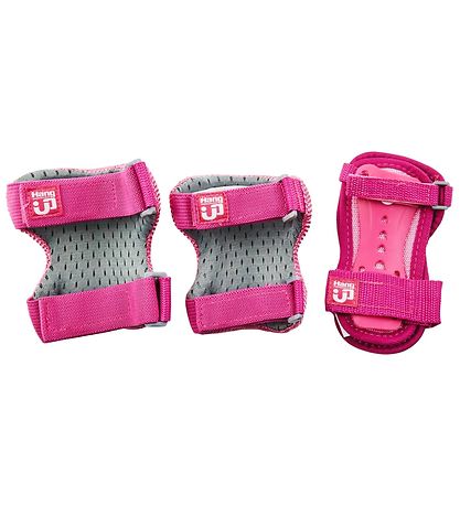 The HangUp protection set protects the exposed areas of the kids when they are out on roller skates, scooters, skateboards or riding a scooter. The protection set does not necessarily prevent injuries, but it dampens the impact on the childs body if they fall.