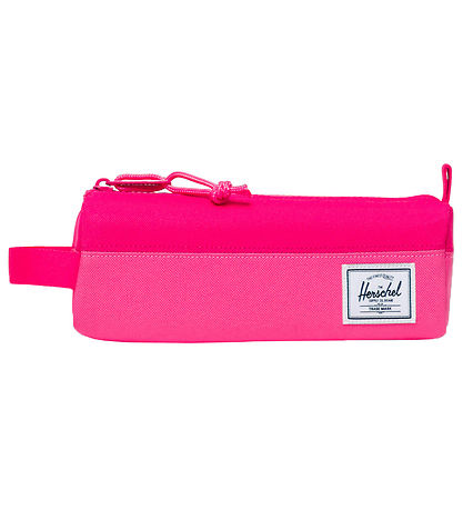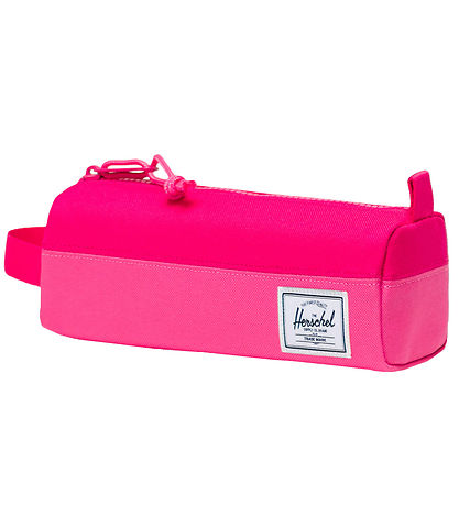 Nice Herschel pencil case in two different shades of pink. On the front there is a white logo patch, and on the back there is a white patch to write your name on.