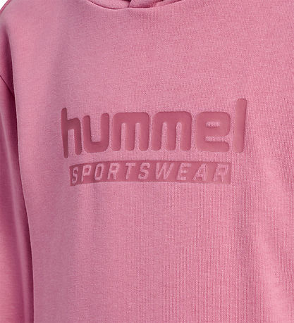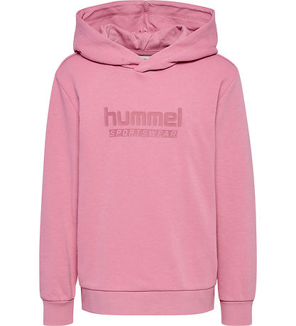 Fine Hummel hoodie in a soft pink shade with a large, toned logo print on the front. Hoodie has long sleeves, which ensures a comfortable fit for everyday use.