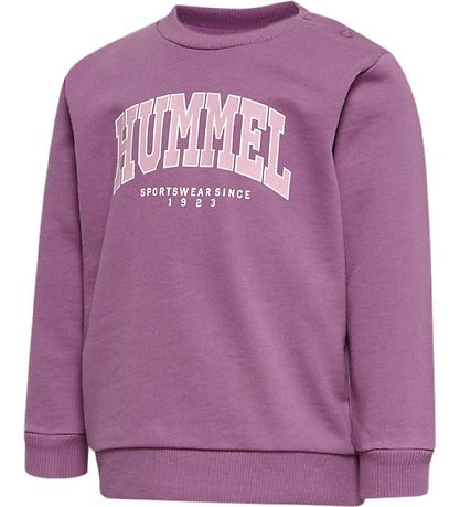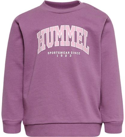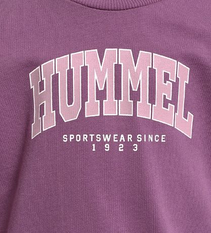 Lovely Hummel sweatshirt in purple with a print on the chest that says "Hummel - Sportswear Since 1923" in pink and white.
