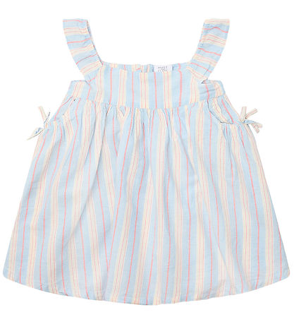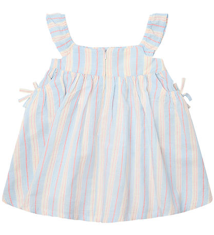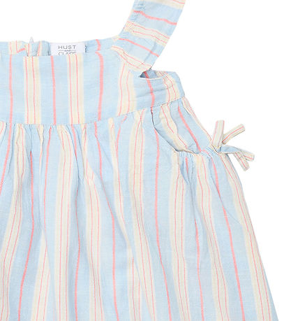Beautiful Hust and Claire dress in a light blue with stripes in pink, yellow and white. The Dress has narrow straps and a loose fit, which makes it comfortable and easy to Have.
