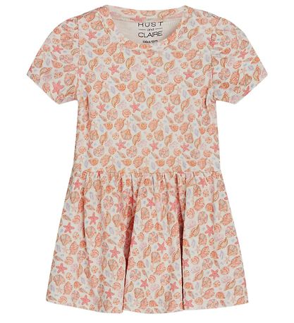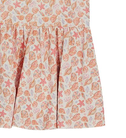 Fine Hust and Claire dress in cream white rib with an all-over-print of shells in orange, pink and blue shades.
