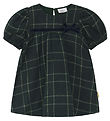 The Hust and Claire dress has short sleeves with a slight puff effect at the shoulders. The Dress closes with push buttons at the left shoulder and is cut at the waist, which gives fine wrinkles and good width to the skirt. It is in a soft and stretchy cotton quality.