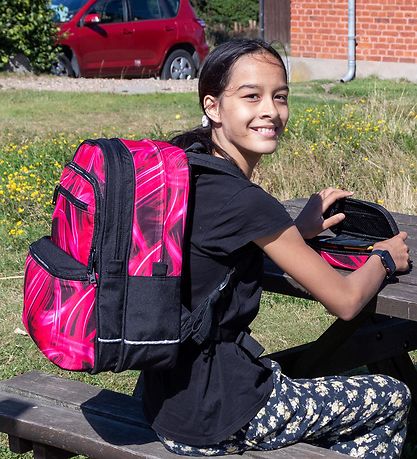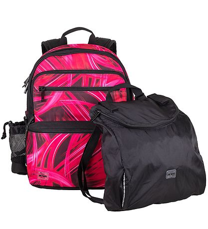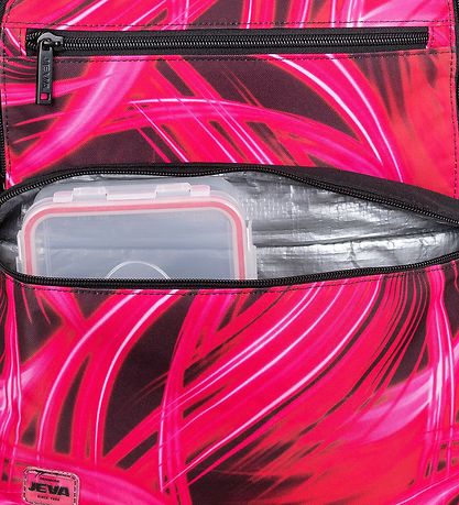Nice Jeva school backpack with a nice allover print in pink, black and white. The School backpack has fine details in black.