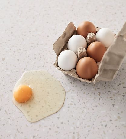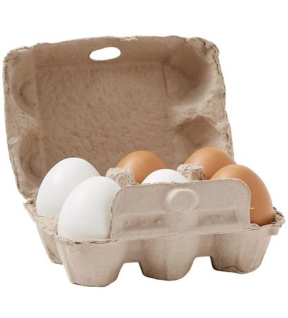 The Kids Concept egg tray is completely similar to a real egg tray and is made of the material we know. Inside, there are three small brown eggs and three small white ones in wood.
