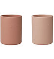 The Liewood cups are made of flexible silicone, and under the bottom there are small bumps which make the cup stand better. The Cups will be ideal as the kid's first cup, as the material will not break if the kid drops it.