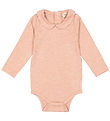 The bodysuit has long sleeves and a round neckline. Around the wrists and at the bottom of the blouse there is an extra layer of fabric so these areas are both softer and more durable.