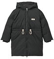 The Molo quilted coat is a long model that goes down over the butt. The quilted coat has a high collar and a removable hood that fastens with push buttons on the inside of the collar. It opens at the front with push buttons. In the waist opening there are slits in the sides.