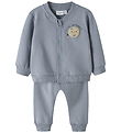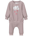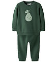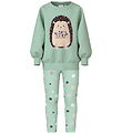 Charming Name It set in mint green consisting of a sweatshirt and leggings. The Sweatshirt has a large in glitter print on the front of a hedgehog with a basket of flowers in it. The Sweatshirt has a round neckline and ribbed edges in all openings. The leggings have an allover print of flowers in white, pink and brown shades. The leggings have a tight fit and elastic at the waist.