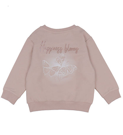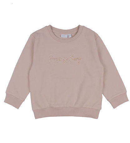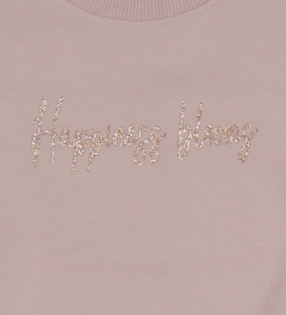 Elegant Name It sweatshirt in a pale pink colour with the text "Happy" printed on the front. The Sweatshirt from Name It has long sleeves and ribbed edges.