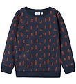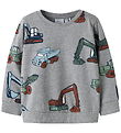Smart Name It sweatshirt in green with an allover print of dinosaurs in green, grey and red shades. The Sweatshirt from Name It has a round neckline and long sleeves with ribbed edges at all openings. The inside is soft, brushed cotton.