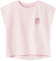 Charming Name It t-shirt in a light rose. The T-shirt has a little, sweet print of a happy strawberry on the chest, which gives a simple and cute expression.