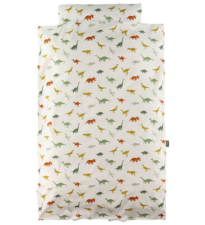 Beautiful Nørgaard Madsens bedding in nature white with a cute dino print in green, yellow and orange.