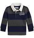 Nice Polo Ralph Lauren blouse in navy with a nice pattern in red and white. The Blouse is made in a knitted quality in a warm mix of cotton and wool.
