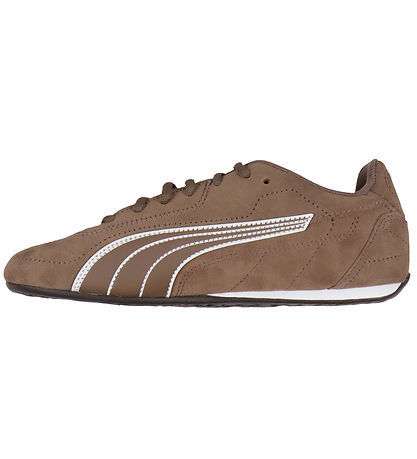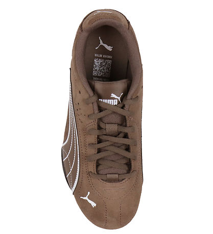 Smart Puma shoes in beautiful brown suede with white logo and details along the sides.