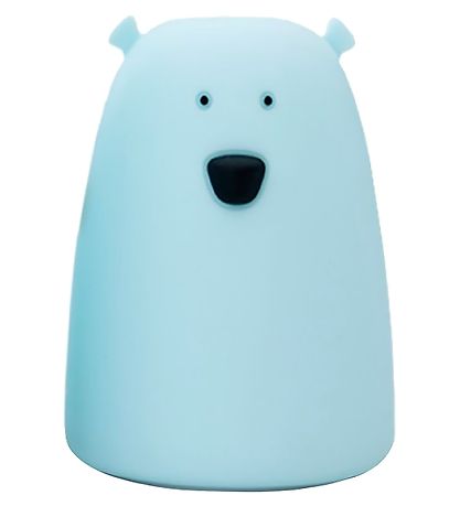 Smart Rabbit & Friends lamp in blue in the shape of a bear, with cute ears and face as well as an included remote control and charger cable.