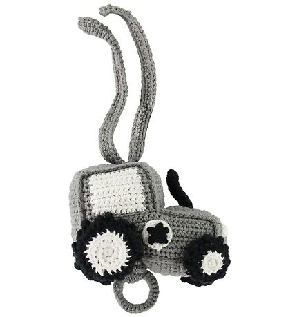 Smart Smallstuff musical mobile in grey knitted with the shape of a tractor.