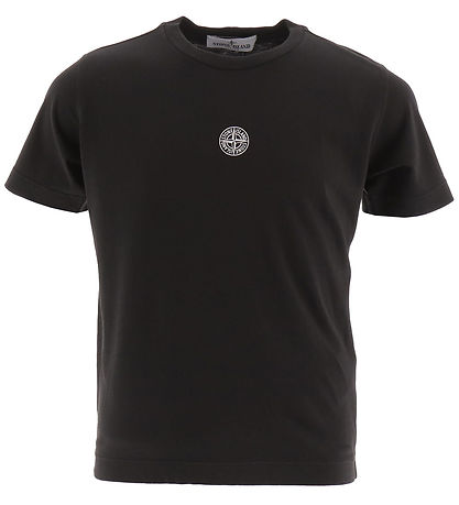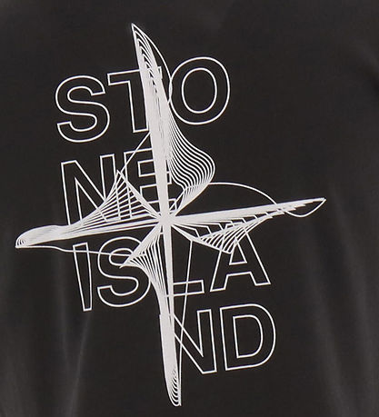 Smart Stone Island t-shirt in black, and on the back there is a large, white print with the name "StoneIsland" together with a compass star. A little, white logo is printed on the front.